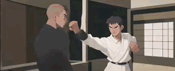 下一秒就转到了二次元世界,出拳、格挡各种招式丝滑转换: